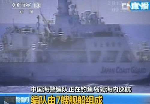 中国海警编队正在钓鱼岛领海内巡航(央视视频截图)