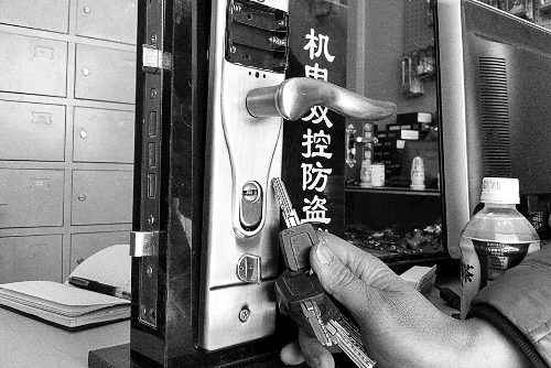 记者看到一种价值上千元的机电双控防盗锁,钥匙像汽车钥匙一样,带有芯片,注册后使用,一旦出现非法开启,锁体会锁死,专业开锁人士一两个小时也未必能撬开。不过,这种防盗锁有电机,干电池需要及时更换,确保功能。