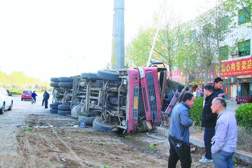 附近市民告诉记者,事发时这辆车自西向东行驶拐入洛栾公路向南,不知咋回事直接冲向对面车道。“要不是高压线杆挡一下,侧翻罐车还要向前滑行,肯定会伤到路边店铺。”